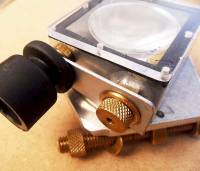 Aqui tenemos el despiece principal del brazo actuador para el inerruptor de la lámpara. Como podeis ver en las imágenes los materiales de lección son principlamente aluminio y latón. Resistententes a la corrosión y de fácil mecanizado. El interruptor de COMMANDER es de tipo magnético. Un pequeño imán de neodimio alojado -y sellado- en el agujero que se ve en la cabeza del actuador se encarga de controlar la iluminación.