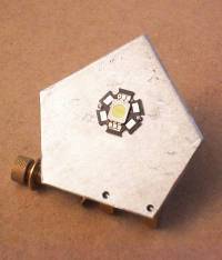 Unas imágenes adicionales, lado frontal con un LED de 3 vatios sujeto sobre la placa principal y posterior con el vástago de soporte.