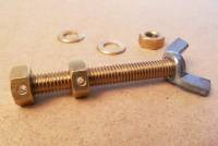 Este es el brazo actuador para el interruptor y el prensacables diseñado y construido por nosotros. El “prensa” es a la vez el soporte del brazo actudaor. Se ha moleteado la cabeza para que salga mas bonito en la foto, pero puede ir perfectamente con su cabeza hexagonal original. Esto representa menos tarea de mecanizado y durante el uso real de la lámpara posibilita su reparación o ajuste con la llave del 13, la misma que usamos para ajustar las chapas en los spit. ¡Vaya!… que casualidad… ;-).